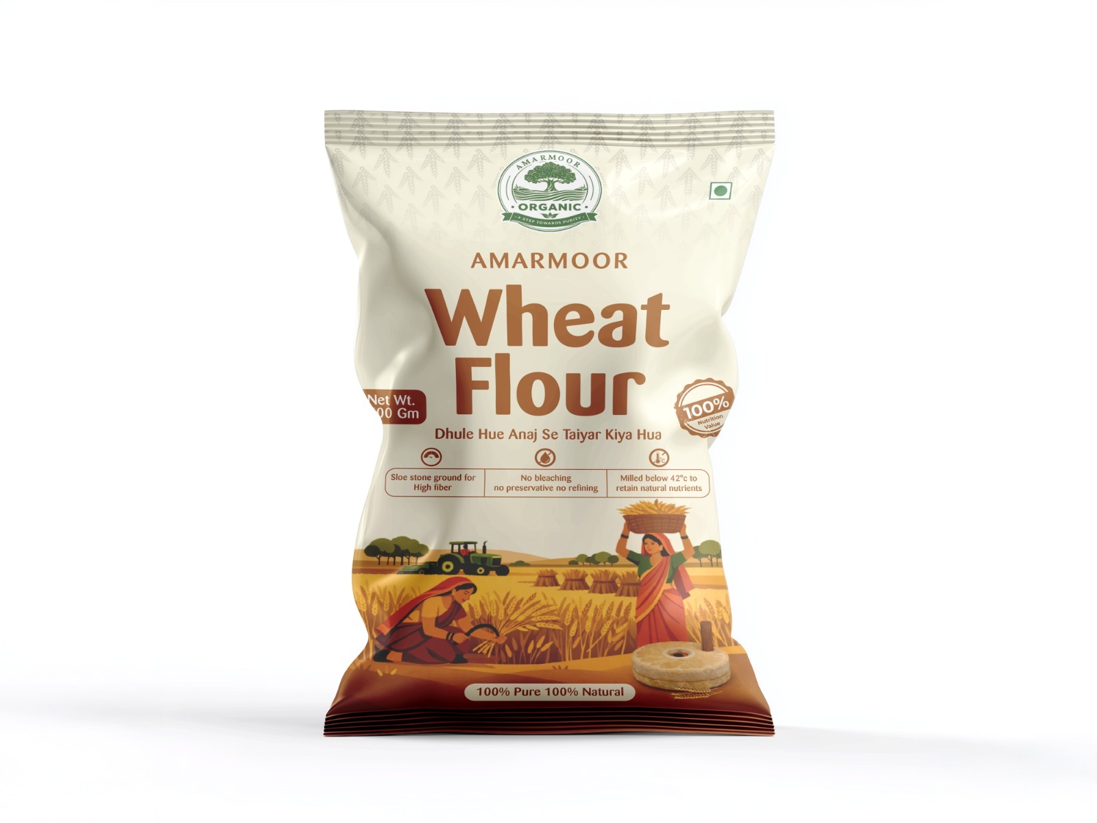 AMARMOOR Organic Sharbati Atta is traditionally stone-ground to deliver soft, fluffy rotis with natural sweetness and wholesome nutrition.